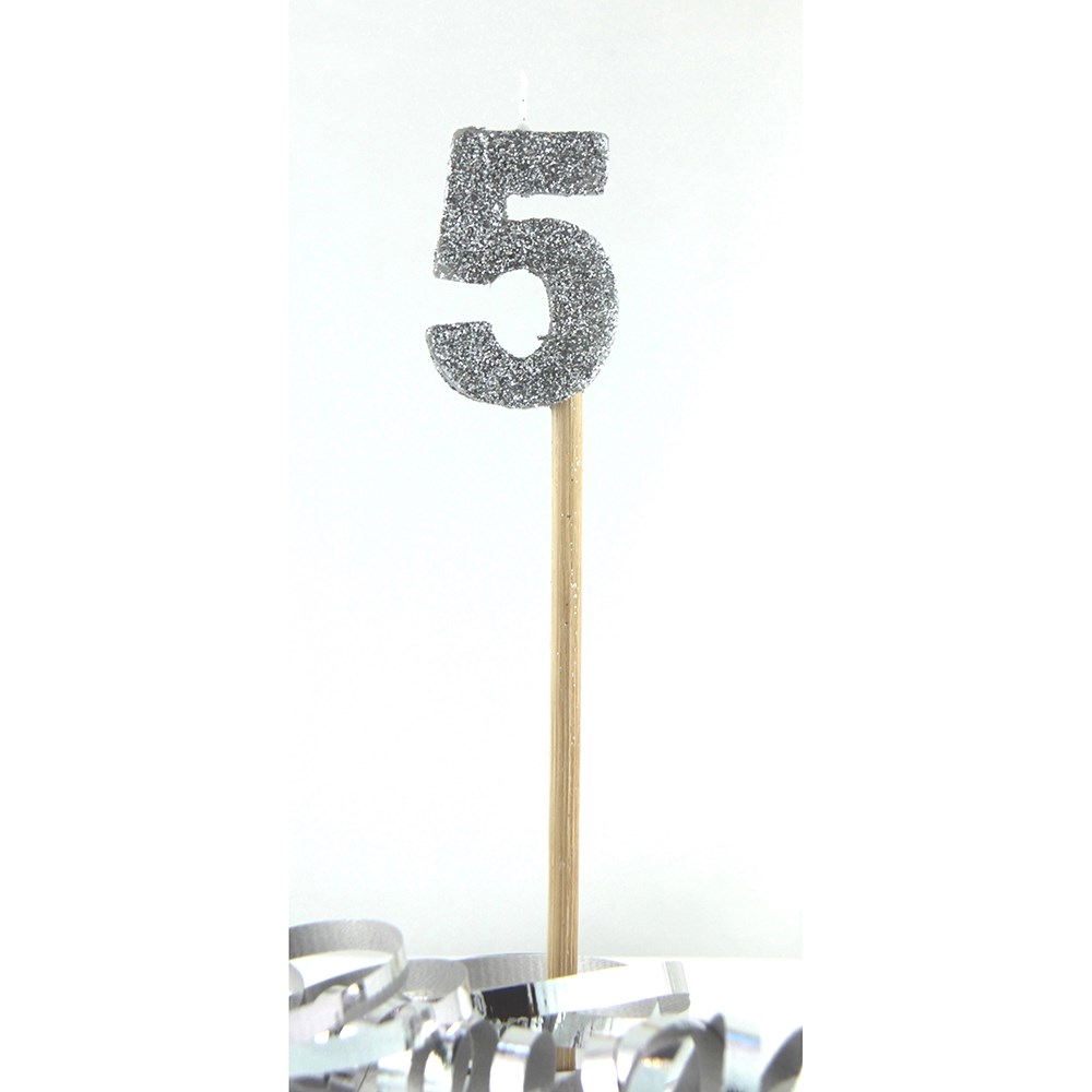 • Alpen Candle Long Stick Glitter No. 5 Silver