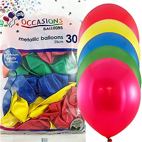 • Alpen Occasions Balloons 25cm Metallic Assorted Colours Pack Of 30