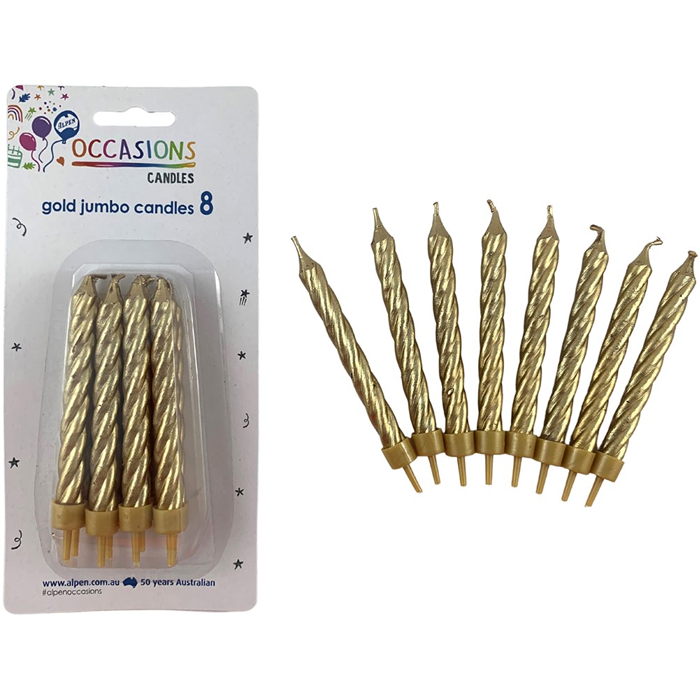 Alpen Occasions Jumbo Birthday Candles With Holders Spiral Gold Pack Of 8