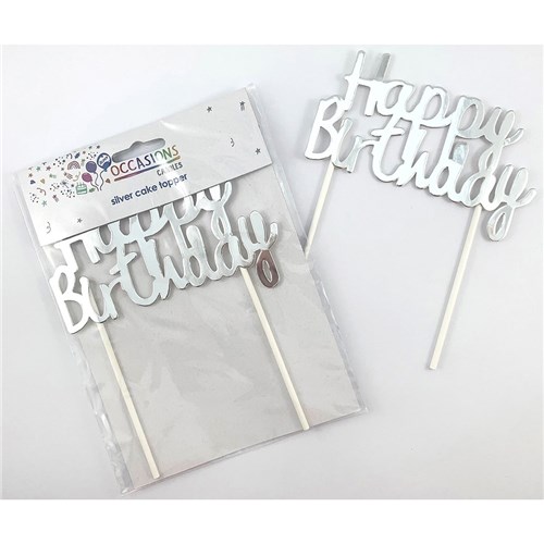 • Alpen Occasions Happy Birthday Cake Topper 100W x 135mmH Metallic Silver