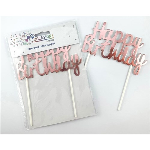 • Alpen Occasions Happy Birthday Cake Topper 100W x 135mmH Metallic Rose Gold