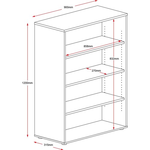 Rapidline Rapid Worker Bookcase 3 Shelves 900W x 315D x 1200mmH Oak And Ironstone
