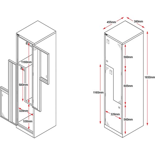 CATEGORY 1 WARNING: This product has a high risk of toppling over. Children have died from furniture tipover. ALWAYS secure this furniture with an anchor device. Comes assembled. Allows full hanging space to each compartment. Riveted construction. Full length door stiffeners. Cam Lock with 2 keys. Coat rail in each compartment. Ventilation on door. 10 Year Manufacturer's Warranty. Delivery, installation and assembly charges may apply to furniture. Please enquire to confirm.