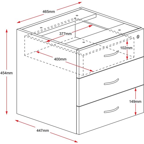 Rapidline Rapid Worker Fixed Pedestal 3 Drawer 465W x 447D x 454mmH Ironstone