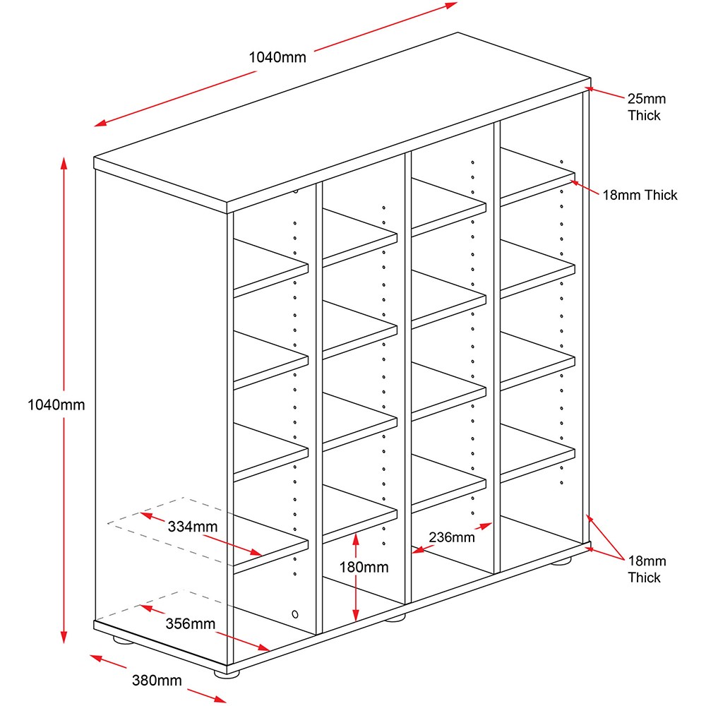 • Comes with adjustable shelves so you can vary the size of the holes to suit.