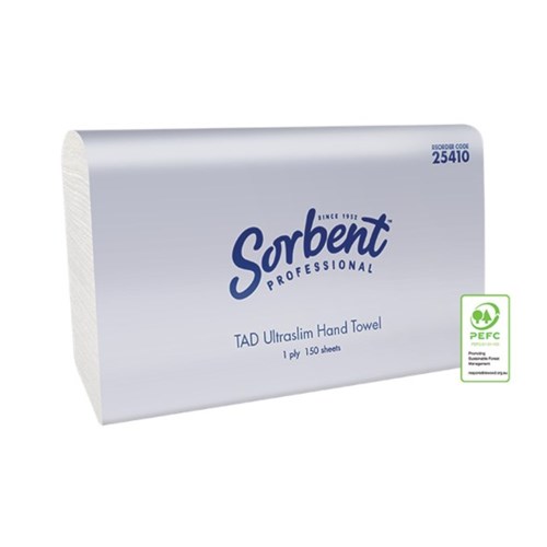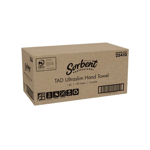 • Sorbent Professional TAD UltraslimHand Towel 1 Ply 150 Sheets Carton Of 16