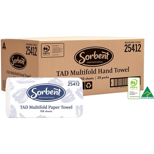 • Sorbent Professional TAD Multifold Hand Towel 1 Ply 150 Sheets Carton Of 20