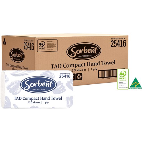 • Sorbent Professional TAD Compact Hand Towel 1 Ply 120 Sheets Carton Of 20