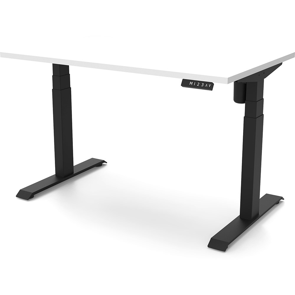 White top with Black frame. Unit Dimension: 1200mm W x 750mm D x 620-1270mm H. E0 rated top. Powdercoat base. Digital control panel with 3 pre-set positions, LED display panel, keypad safety lock & reminder alarm setting. Anti-collision technology, noise emission of less than 50DB. Lifting capacity of 80kg with a max speed of 25mm per second. 700mm wide foot size with adjustable leveling feet. 10 Year Manufacturer's Warranty. Delivery, installation and assembly charges may apply to furniture. Please enquire to confirm.