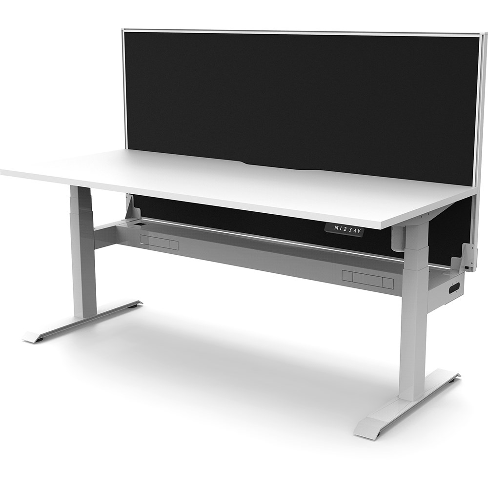 White top with White frame. Unit Dimension: 1200mm W x 750mm D x 1330mm H. 620-1270mm height range for desk. E0 rated top. Powdercoat base. Digital control panel with 3 pre-set positions, LED display panel, keypad safety lock & reminder alarm setting. Anti-collision technology, noise emission of less than 50DB. Lifting capacity of 80kg with a max speed of 25mm per second. 700mm wide foot size with adjustable leveling feet. Comes with 30mm thick privacy screens and cable tray for cable management. 10 Year Manufacturer's Warranty. Delivery, installation and assembly charges may apply to furniture. Please enquire to confirm.