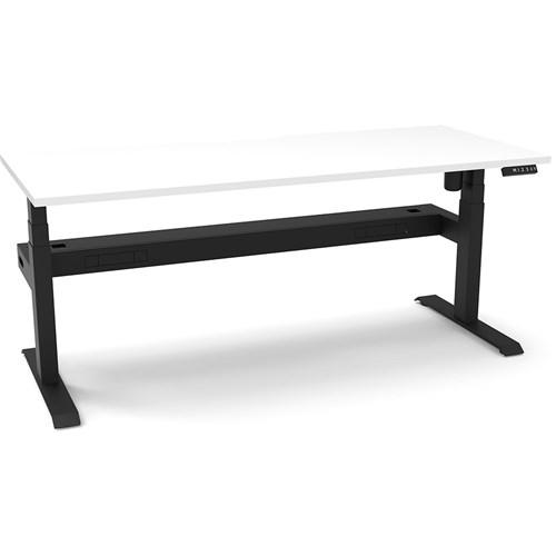 White top with Black frame. Unit Dimension: 1500mm W x 750mm D x 620-1270mm H. Comes with cable tray for cable management. E0 rated top. Powdercoat base. Digital control panel with 3 pre-set positions, LED display panel, keypad safety lock & reminder alarm setting. Anti-collision technology, noise emission of less than 50DB. Lifting capacity of 80kg with a max speed of 25mm per second. 700mm wide foot size with adjustable leveling feet. 10 Year Manufacturer's Warranty. Delivery, installation and assembly charges may apply to furniture. Please enquire to confirm.