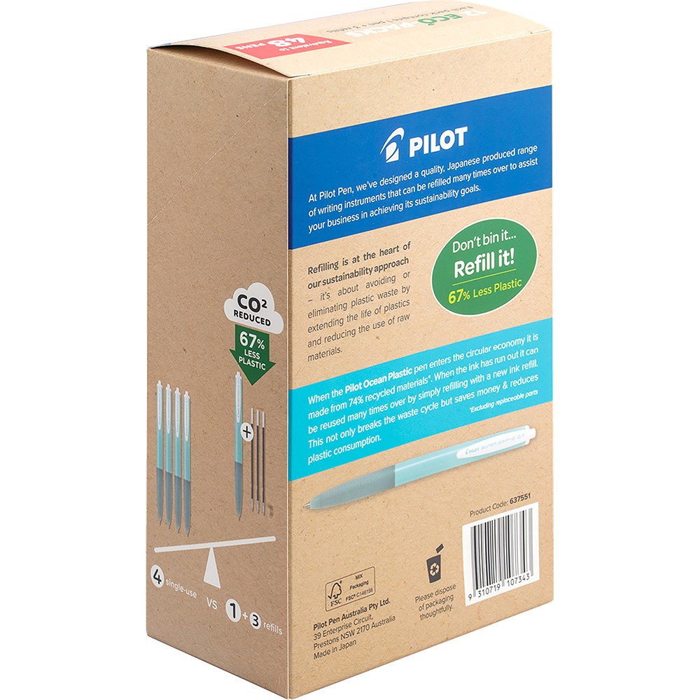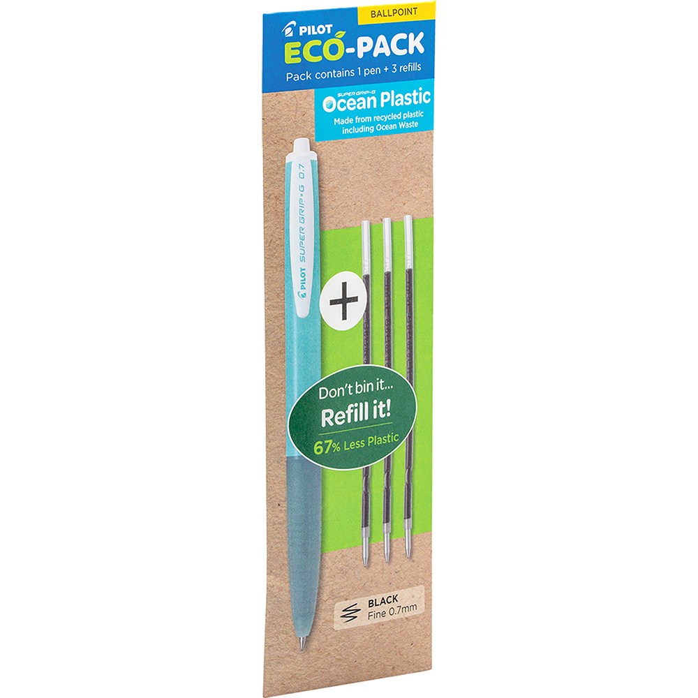 Pilot Eco Pack Super Grip G Retractable Ballpoint Ocean Plastic Pen+Refill 0.7mm Black