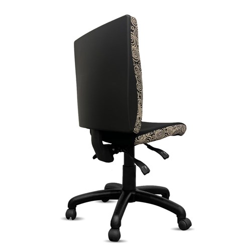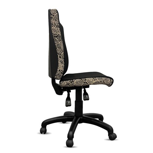 A unique commercial fabrics designed by Nelly Patterson (Indigenous Artist) combined with K2 Black Fabric to upholster the chair. Weight rating: 135kg. Indicated seat hours: 24/7. Seat Dimensions: 510W x 450D x 460-590mmH. Back Height: 580mmW. Back Width: 495mm. Heavy duty commercial chair with 3 lever mechanism and ratchet back height adjustment. 5 way 700mm commercial grade nylon base. Heavy duty gas lift cylinder. Moulded seat foam for supreme comfort. Fire retardant contoured moulded foam. Product image for reference only. Design pattern may differ as a result of variations in the art work. 7 Year Years Manufacturer's Warranty. Delivery, installation and assembly charges may apply to furniture. Please enquire to confirm. Optional adjustable armrest available. Refer to product code 3043352.
