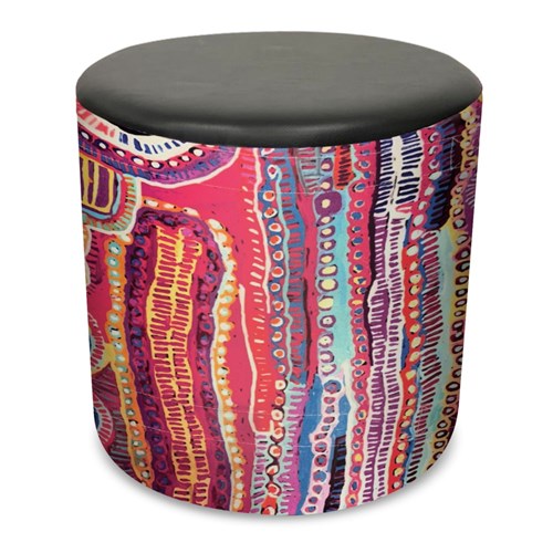 A unique commercial fabrics designed by Murdie Nampijinpa Morris (Indigenous Artist) combined with K2 Commercial PU Leather. Weight rating: 120kg. Indicated seat hours: 12 hours. Dimensions: 450 Diameter x 450mmH. Heavy duty commercial chair with 3 lever mechanism and ratchet back height adjustment. Concealed feet. Fire retardant contoured moulded foam. Available in different size on request. Product image for reference only. Design pattern may differ as a result of variations in the art work. 5 Years Manufacturer's Warranty. Delivery, installation and assembly charges may apply to furniture. Please enquire to confirm.