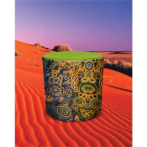 A unique commercial fabrics designed by Cedric Varcoe (Indigenous artist) combined with K2 Commercial PU Leather. Weight rating: 120kg. Indicated seat hours: 12 hours. Dimensions: 450 Diameter x 450mmH. Provides flexible seating for open plan areas, reception and education spaces. Concealed feet. Fire retardant contoured moulded foam. Available in different size on request. Product image for reference only. Design pattern may differ as a result of variations in the art work. 5 Years Manufacturer's Warranty. Delivery, installation and assembly charges may apply to furniture. Please enquire to confirm.