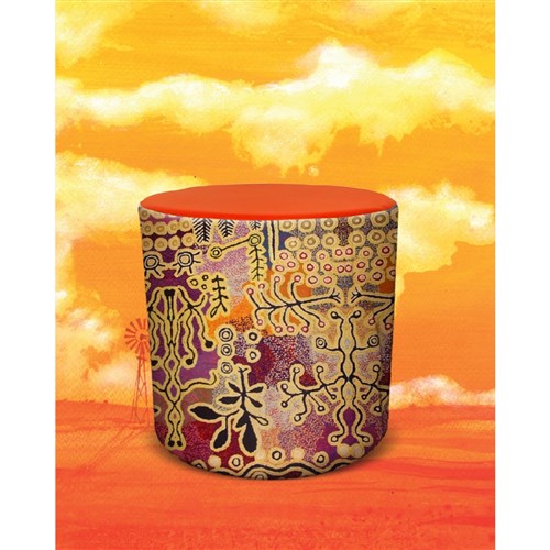 A unique commercial fabrics designed by Paddy Stewart (Indigenous artist) combined with K2 Commercial PU Leather. Weight rating: 120kg. Indicated seat hours: 12 hours. Dimensions: 450 Diameter x 450mmH. Provides flexible seating for open plan areas, reception and education spaces. Concealed feet. Fire retardant contoured moulded foam. Available in different size on request. Product image for reference only. Design pattern may differ as a result of variations in the art work. 5 Years Manufacturer's Warranty. Delivery, installation and assembly charges may apply to furniture. Please enquire to confirm.
