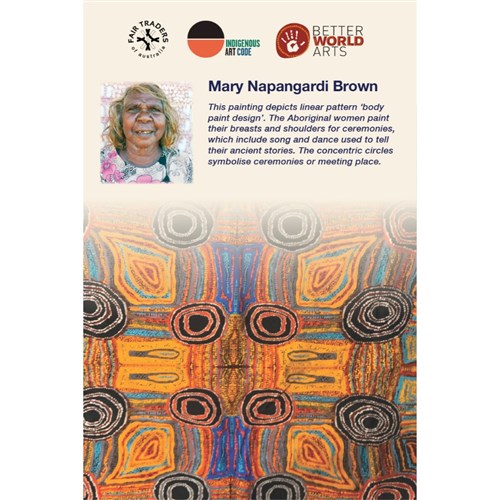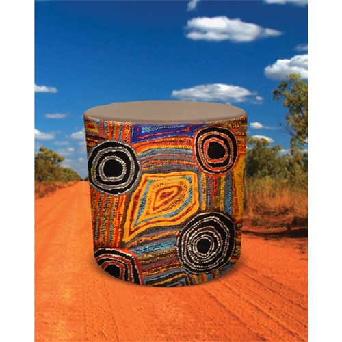 A unique commercial fabrics designed by Mary Napangardi Brown (Indigenous artist) combined with K2 Commercial PU Leather. Weight rating: 120kg. Indicated seat hours: 12 hours. Dimensions: 450 Diameter x 450mmH. Provides flexible seating for open plan areas, reception and education spaces. Concealed feet. Fire retardant contoured moulded foam. Available in different size on request. Product image for reference only. Design pattern may differ as a result of variations in the art work. 5 Years Manufacturer's Warranty. Delivery, installation and assembly charges may apply to furniture. Please enquire to confirm.