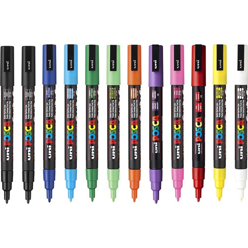 • Uni Posca Paint Marker PC-3M Fine 1.3mm Bullet Tip Assorted Pack of 12