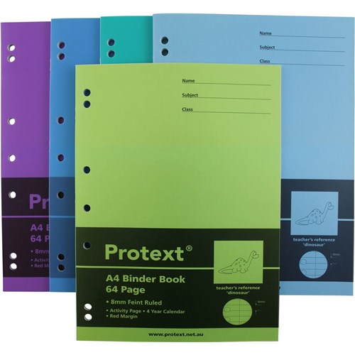 Protext long lasting PP cover. Bright, mixed colours. 4 year calendar, activity page, maths tables & red margin. Quality white bond paper.