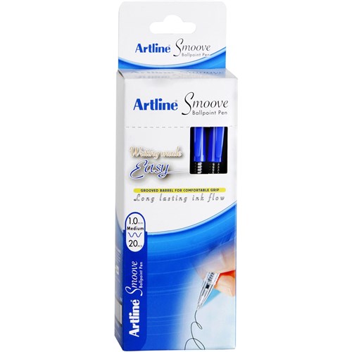Artline 8210 Smoove Ballpoint Pen Medium 1mm Blue Pack Of 20