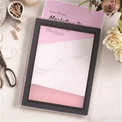Features a clear window allowing customising of front and inside cover. Printed frames adds design and finish, manufactured from durable, non-stick polypropylene material.