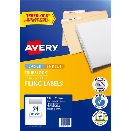 Avery Filing Laser & Inkjet Labels White L7170 134x11mm 24UP 600 Labels 25 Sheets
