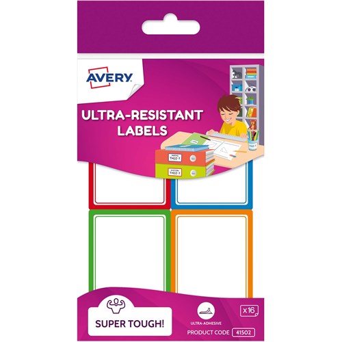 • Avery Kids Ultra-Resistant 64x44mm Assorted Colours 16 Labels