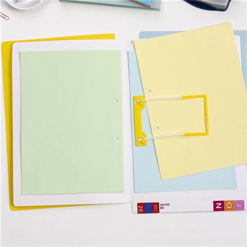 Made from extra heavyweight manila board. Reinforced side tab to affix colour coding labels for identification. Each file is fitted with Tubeclip which allows papers to be secured and easily accessed whenever required. Use on an existing shelf unit, cabinet or mobile shelving unit. Only expands as paper is added to eliminate wasted space. 35mm expansion.