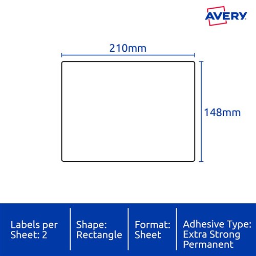 • Avery Identification Laser Ultra Resistant White L7916 210x148mm 2UP 20 Labels