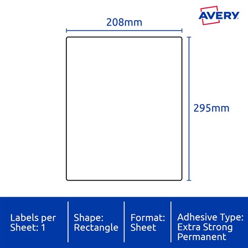 • Avery Identification Laser Ultra Resistant White L7917 208x295mm 1UP 10 Labels