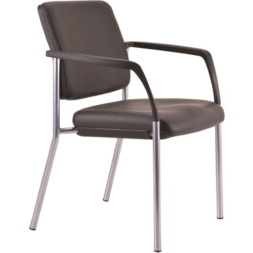 • Buro Lindis 4 Leg Chair With Arms Black PU Seat And Back Silver Frame