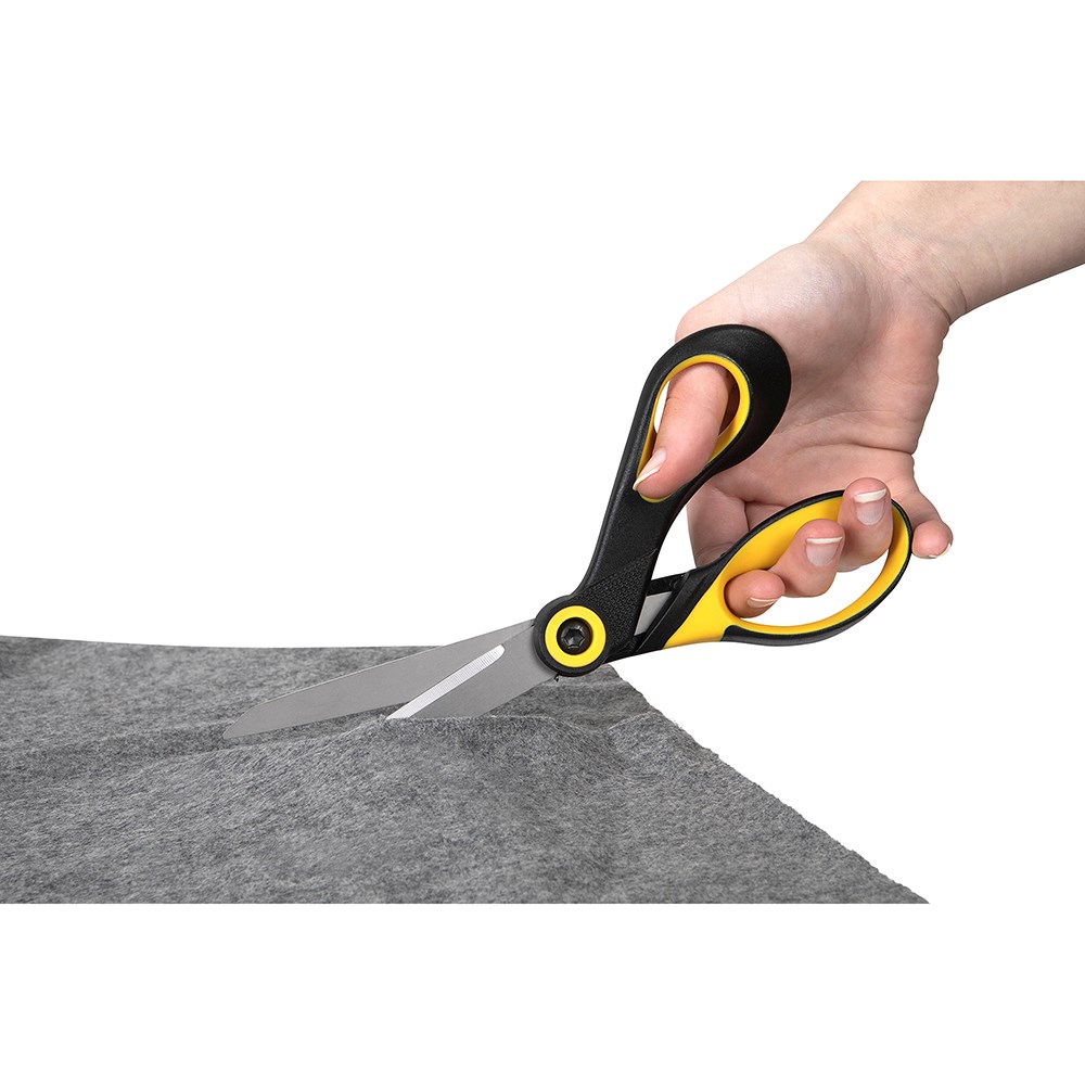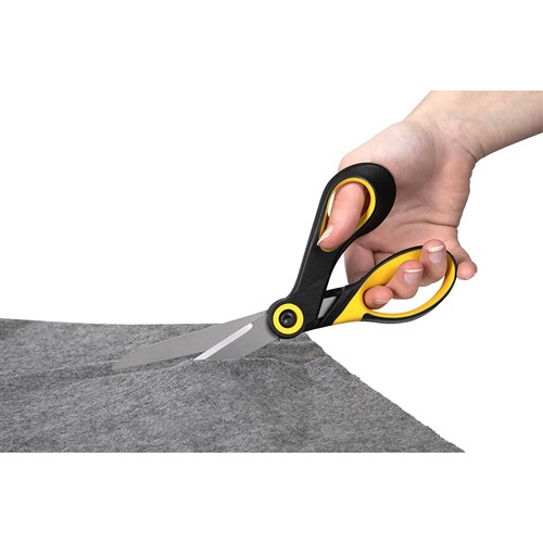 Titanium coated blades ensure this scissor will stay sharp and perform every time. Blades are three times harder than stainless steel. Rubberised grip on handles for comfort when in use. Extra large finger holes to fit all.
