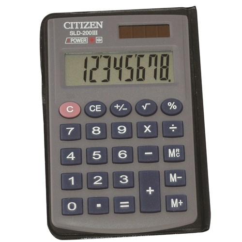 Citizen SLD200 Pocket Calculator 8 Digit Rubberised Keys Grey