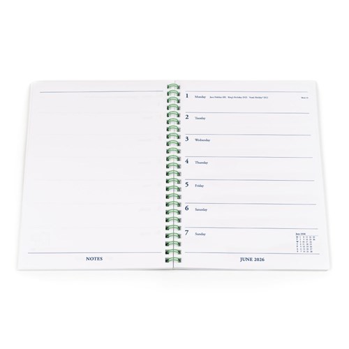 This Colplan planner offers reliable and easy-to-use format in a practical A5 wire weekly notebook. Australian and New Zealand holidays. Tried and tested layouts. Perfect for easy-to-read planning. Size: 210 x 148mm. FSC Certified.