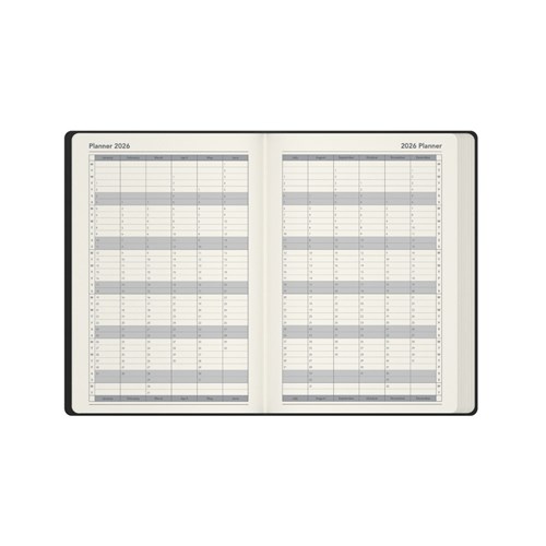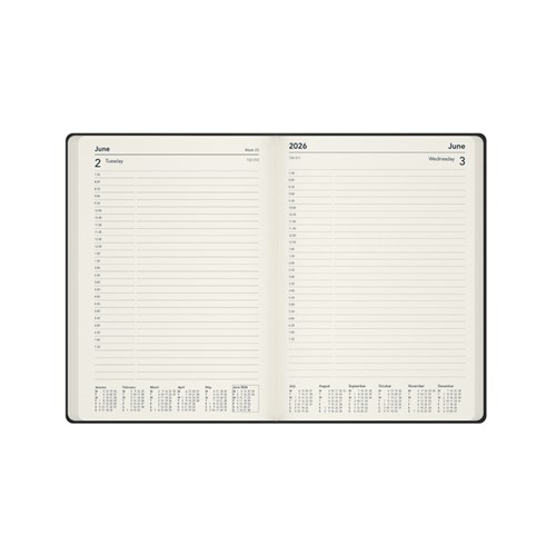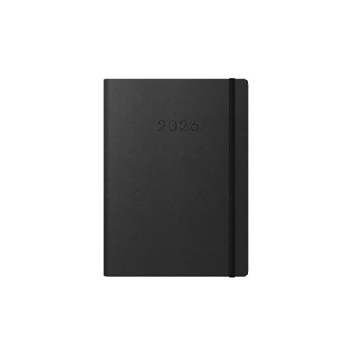 Soft touch cover. 3 year calendars. Appointment times 7:30am - 7:30pm, 1/2 hourly. Current and forward year planners. Financial summary. International holidays. International dialling. Lay flat opening, ribbon marker. Expandable back pocket. Elastic closure. Size: 210 x 148mm. FSC Certified.