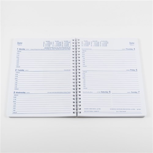 • The range is available as an A5 Week to View Student Diary (spiral or perfect bound) and practical A4 and A5 wire weekly notebook.