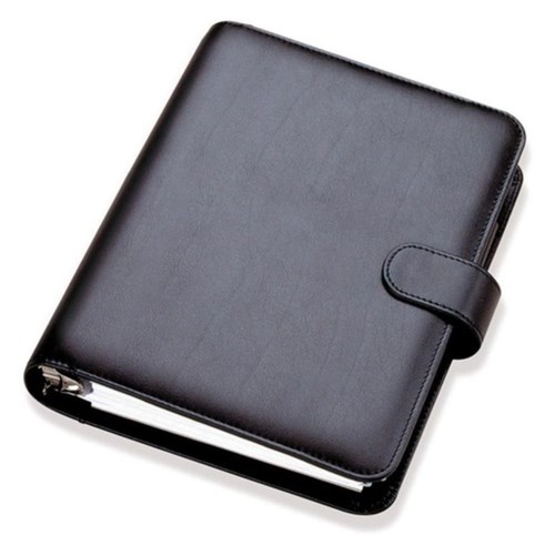Ring organiser. Resealable sleeve. Card slots. Undated week to view pages. Reference information. Today ruler. Note / To-do pages and ruled notepad. A-Z tabs. Telephone and address pages. Finance pages. Pen loop. FSC Certified.