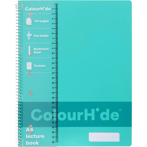 ColourHide Lecture Book A4 7 Hole Punched Side Bound 140 Page Aqua