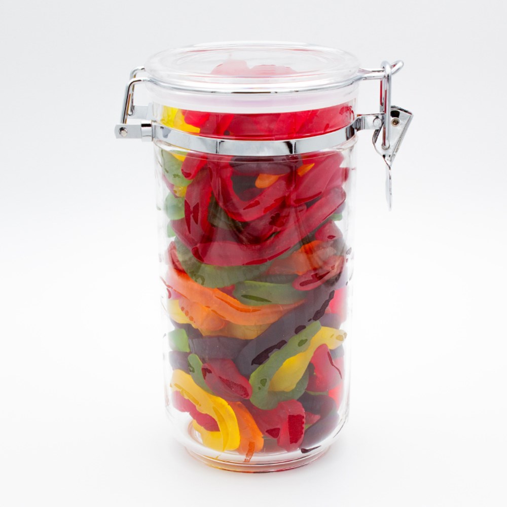 Air-tight lid with chrome clip. BPA Free. Dishwasher top rack safe. Suitable for food use as well as storing a wide variety of office and home bits and pieces. Available in a variety of convenient sizes to accommodate all needs.
