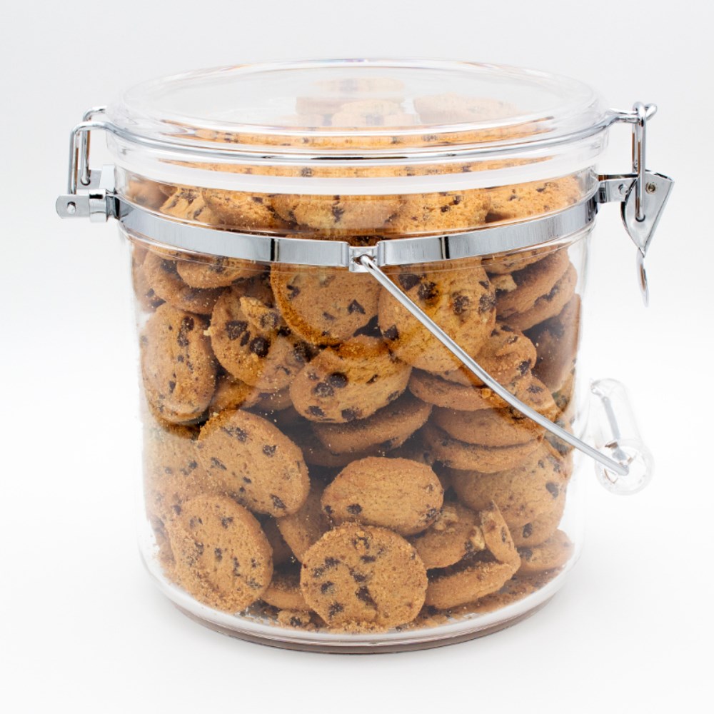 • Air-tight lid with chrome clip.
