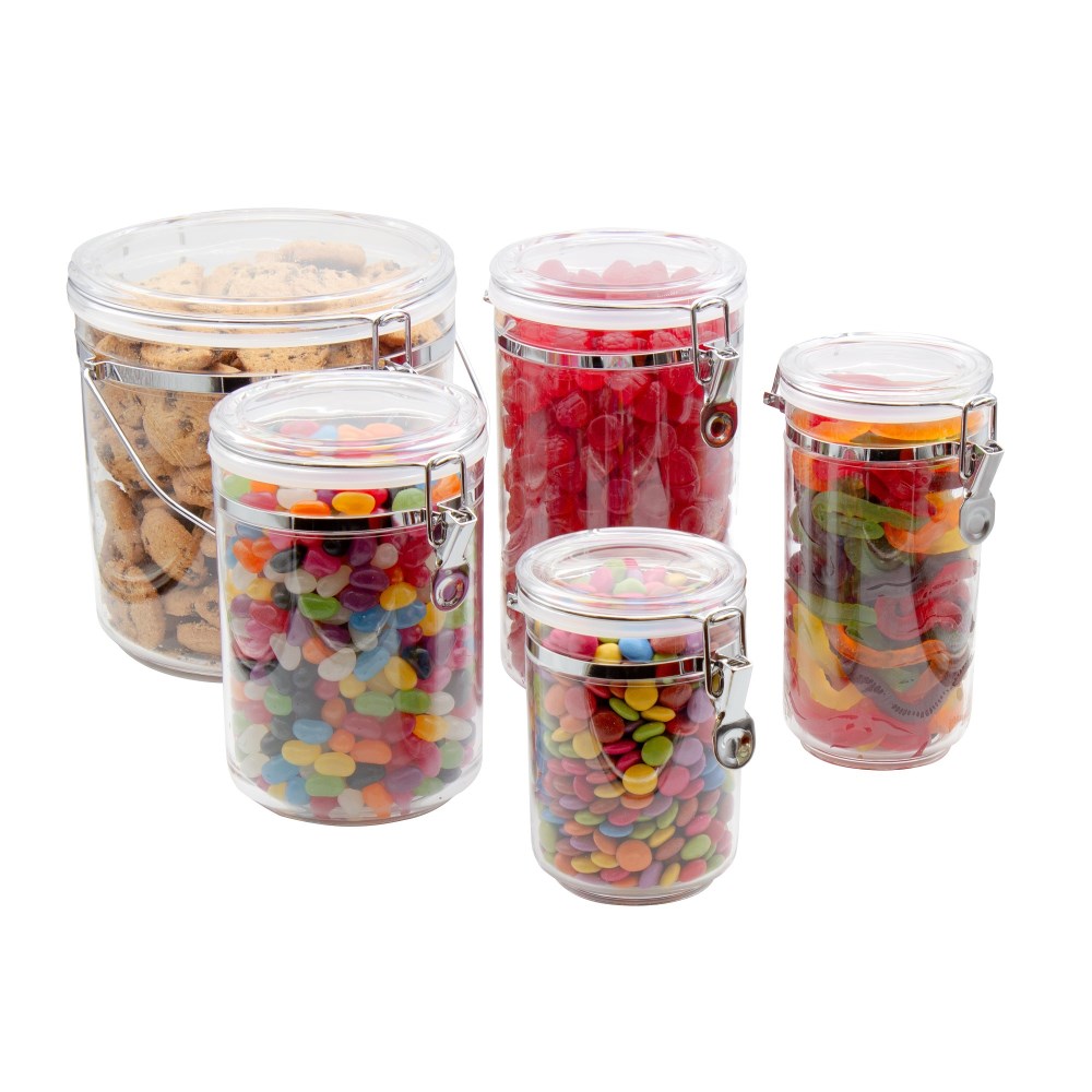 Air-tight lid with chrome clip. BPA Free. Dishwasher top rack safe. Convenient handle. Suitable for food use as well as storing a wide variety of office and home bits and pieces. Available in a variety of sizes to accommodate all needs.