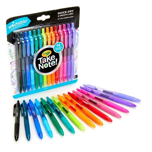 Crayola Take Note Washable Gel Retractable Pen Medium 0.7mm Pack of 14
