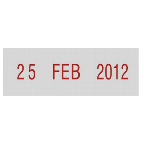 Self-inking dater stamp. All daters print day, month and year. Built in ink pad - red date with blue text. Each stamp has 12 consecutive years of date bands. Impression size: 4mm date size. Max impression Area: 26 x 40mm.