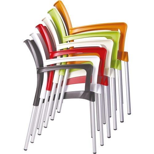 Shaped for maximum comfort. The Polypropylene shell is UV stable so it will not fade or go brittle in Australia The aluminium legs have been anodised so they will not rust even when used in coastal areas. Stackable 4 to 6 high. Suitable for indoor and outdoor commercial use. Chair Capacity: 150kg. Composition: Polypropylene shell and anodised aluminium legs. Seat Width: 555mm. Seat Depth: 570mm. Back Height: 800mm. Seat Height: 450mm. Arm Height: 655mm. 5 Year Manufacturer's Warranty. Delivery, installation and assembly charges may apply to furniture. Please enquire to confirm.