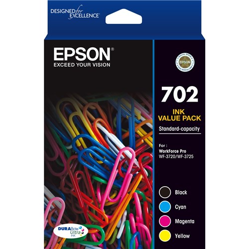 Epson 702 DURABrite Ultra Ink Cartridge Value Pack of 4 Assorted Colours