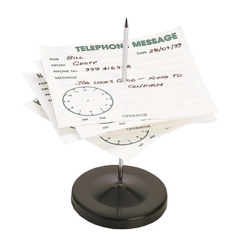 Stainless steel spike and sturdy heavy base for filing messages and notes. Keeps your important paperwork in one secure place. Ideal for use in accounts and administration departments. Spike 135mm long.