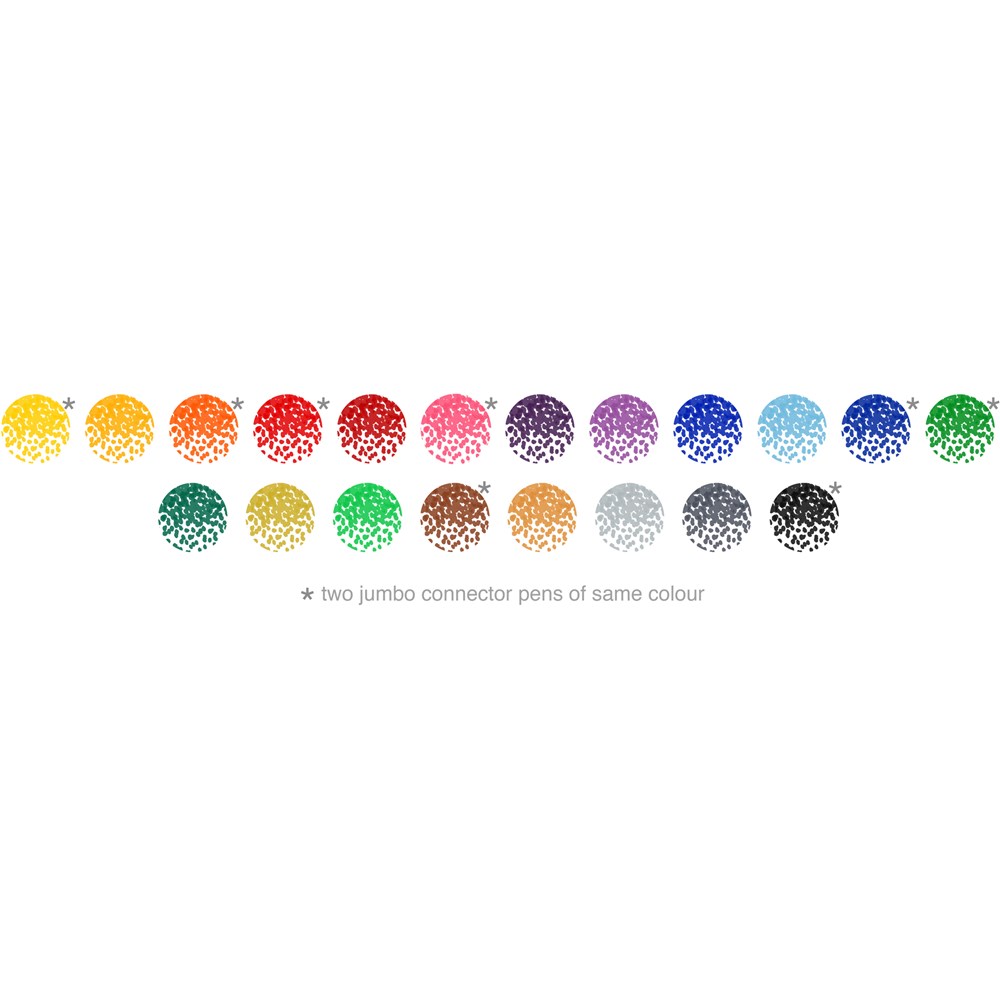 Brilliant, vibrant colours promote maximum creative inspiration 2.3mm bullet-shaped durable felt-nibs create consistent, precise lines Connectable caps keep pens organised and inspire play and building Water-based ink from food dyes is non-toxic and safe for kids Washes out of most fabrics for peace of mind and easy clean-up Breathable non-choke caps ensure worry-free playtime Long-lasting ink means fewer pen replacements Available in up to 20 colours