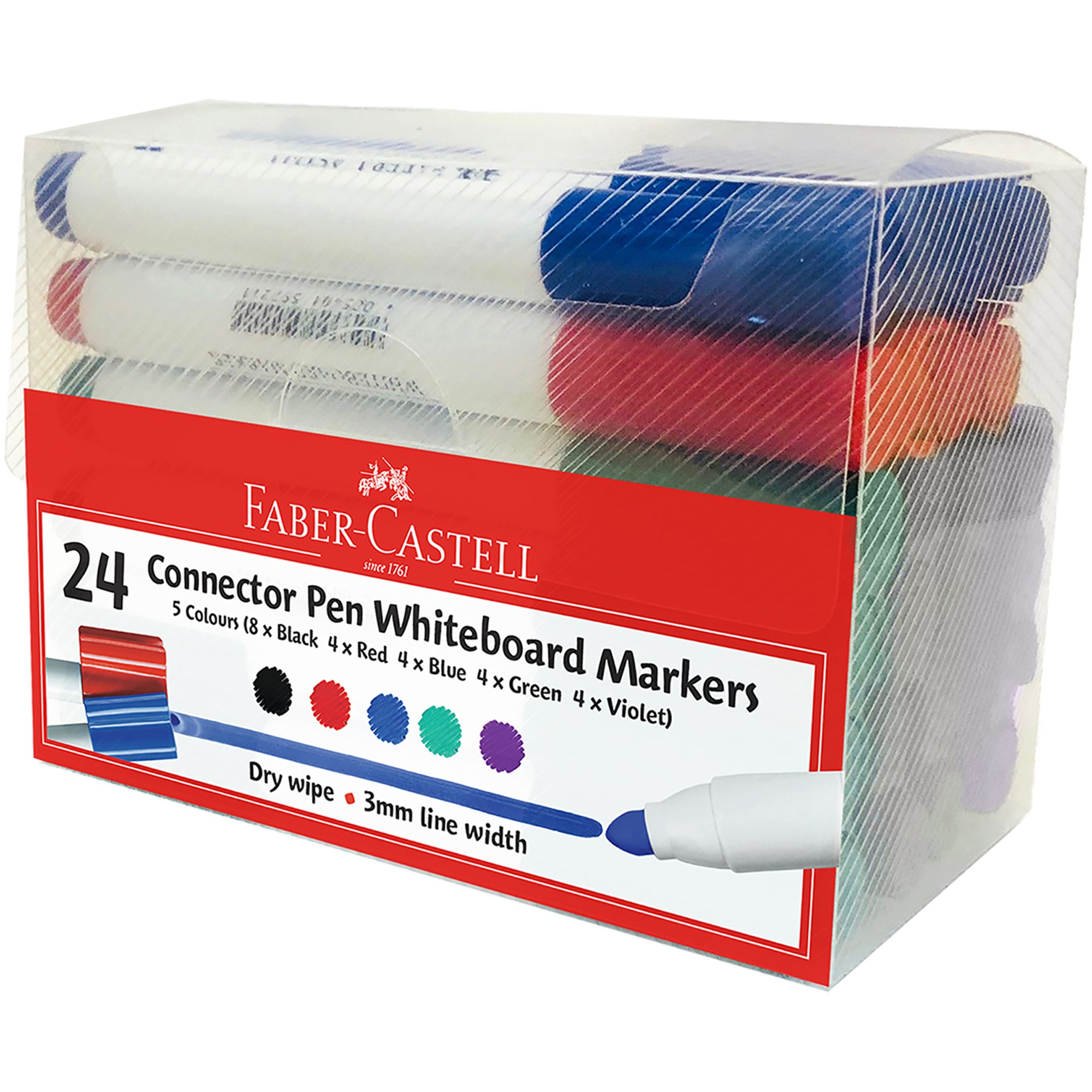 • 24 Whiteboard Markers in an assortment of bright, vibrant colours (8 Black, 4 Red, 4 Green, 4 Blue, 4 Violet)