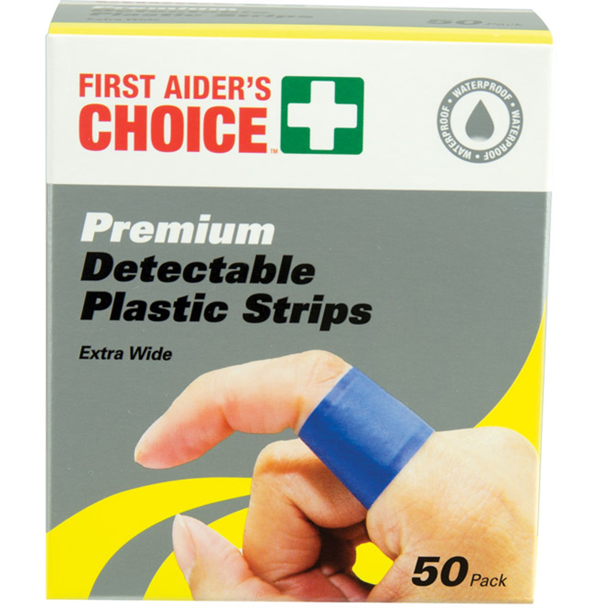 • First Aider's Choice Premium Detectable Adhesive Strips Extra Wide Blue Box Of 50