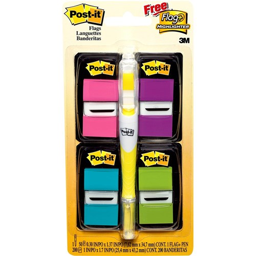 Post-It 680-PPBGVA Flags Value Pack 25x43mm Bright Colours + Highlighter Pack of 200